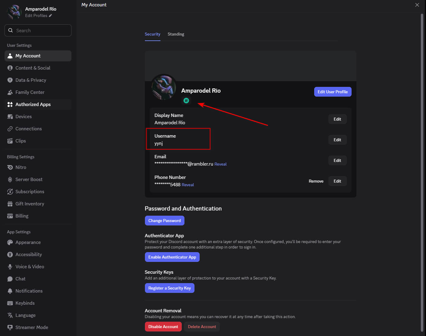 已激活手机号码,可访问邮箱,并提供徽章。Discord 登录名和密码与邮箱(rambler.ru)账号一致。